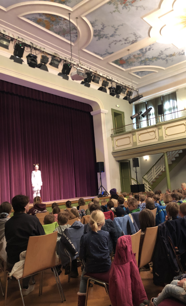 Das Theaterstück sahen die Kinder sich gebannt an und ließ sie nach Ende mit großen Augen und offenen Mündern zurück. Auf der Heimfahrt war dann viel Gesprächsbedarf. „Was hat Dir am Besten gefallen“ und „Hast du das gesehen?“ waren einige Fragen der Kinder.